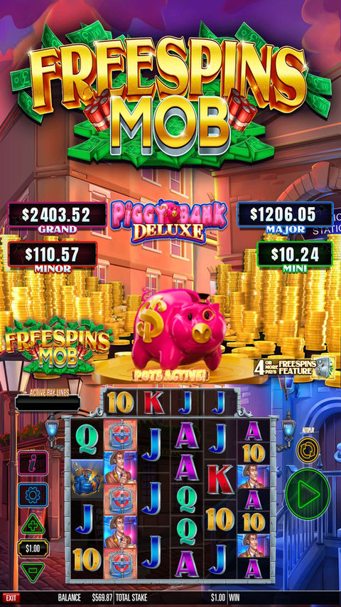 When the pink piggy bank is close to bursting, the Piggy Bank Deluxe Bonus is randomly awarded. The lucky player spins the reels for the chance to win one of the progressive jackpots which build across all eight games.